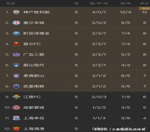 目前的积分榜上,海港5轮仅有1分位居垫底位置。